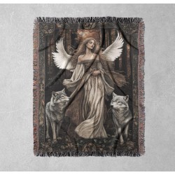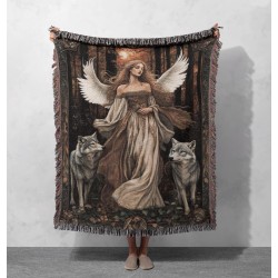 Tapestry Display: Doubles as a wall hanging, turning the angel and wolves design into a dramatic centerpiece.