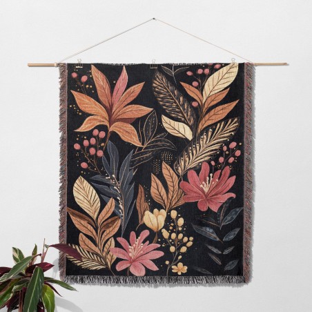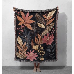 Measuring 60 × 50 inches (152 × 127 cm), this woven blanket is perfectly sized for draping across a sofa, layering on your bed, or wrapping yourself in comfort. Its versatile proportions also make it an elegant wall tapestry that brings a burst of nature-inspired artistry into your home.