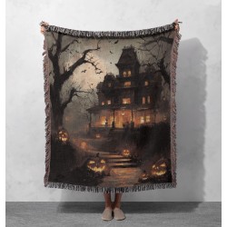 Measuring 60 × 50 inches (152 × 127 cm), this woven blanket is an ideal size for draping over a sofa, layering on your bed, or wrapping yourself in cozy warmth. It also doubles as a dramatic wall tapestry, perfect for adding seasonal or gothic charm to your home décor.