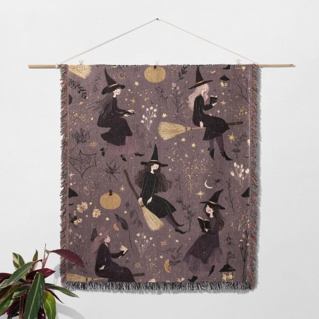 Measuring 60 × 50 inches (152 × 127 cm), this woven blanket is the perfect size for cozying up on the sofa, layering on a bed, or using as a statement wall hanging. Its versatile proportions make it both functional and decorative, ideal for seasonal or fantasy-inspired interiors.