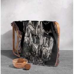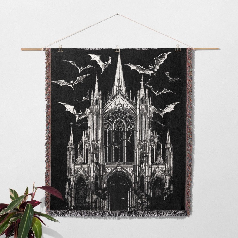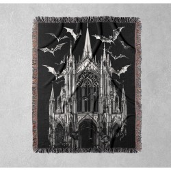 Measuring 60 × 50 inches (152 × 127 cm), this woven blanket is the perfect size for draping across your sofa, layering on your bed, or wrapping yourself in warmth. It also works beautifully as a dramatic wall tapestry, adding gothic elegance to your living space.