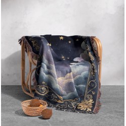 Measuring 60 × 50 inches (152 × 127 cm), this woven blanket is perfectly sized for cozy use on a sofa, as an elegant layer on your bed, or as a decorative wall tapestry. Its versatile proportions make it both a functional throw and a celestial piece of art.