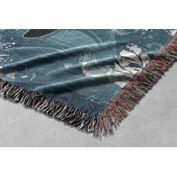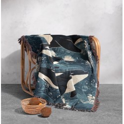 Measuring 60 × 50 inches (152 × 127 cm), this woven blanket is the perfect size for cozying up on a sofa, layering on a bed, or displaying as an ocean-inspired tapestry. Its versatile proportions make it both a functional throw and a stunning piece of marine art.